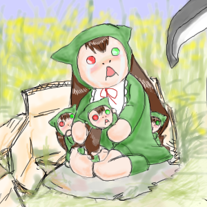 その部屋には実装石が1匹いた。実装石にしては太っていて、そいつは両方の目とも緑色に染まっている。そこに男がドアを開けて入ってきた。その手にはジューシーな沸騰したハンバーグステーキが置かれた皿を持っていた。 「エメラルド、お腹の仔の状態はどうですか?」 実装石はフォークを突き出して答える。 「当たり前デス! 特別なワタシのコドモは、特別なワタシのお腹の中で元気に大きくなっているデス。」 手と舌に […]